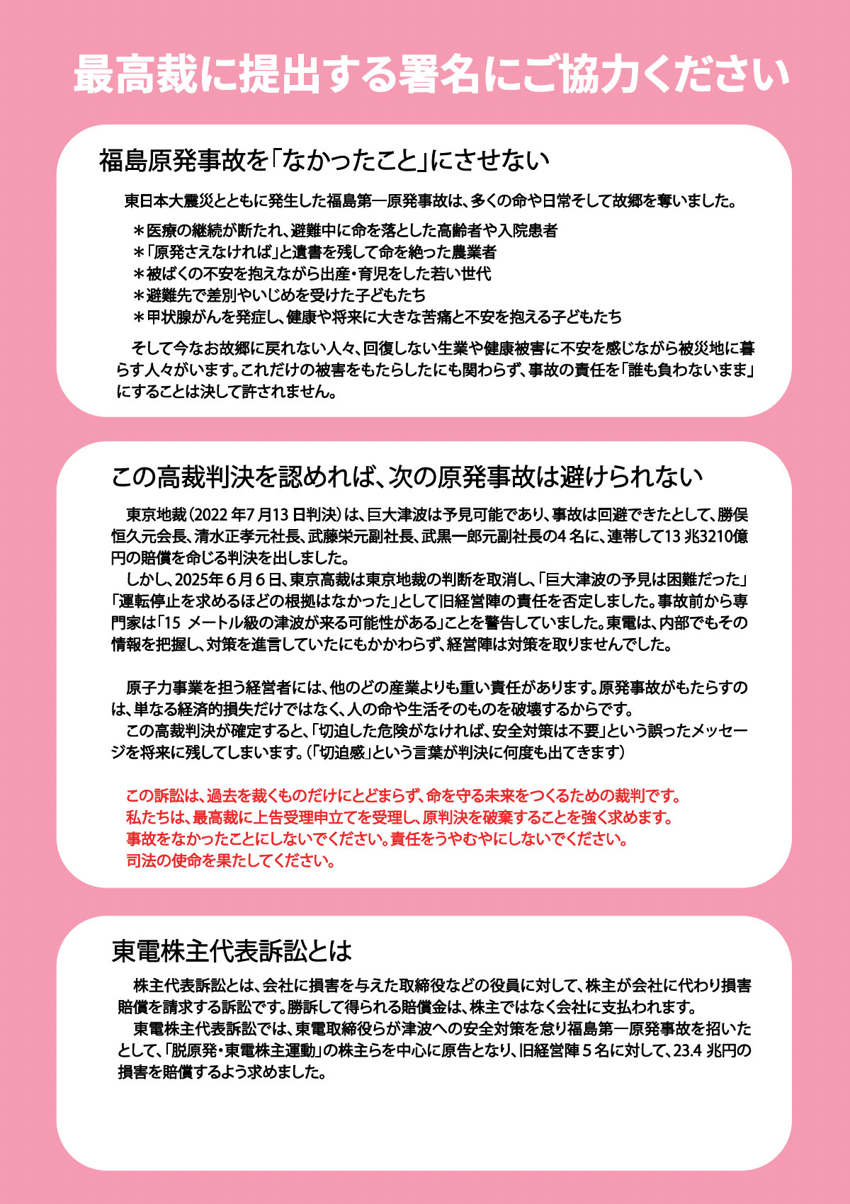 【署名あり】「東電株主代表訴訟」を応援してください!