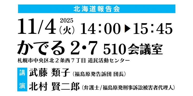 福島原発刑事裁判について振り返り、 これからの取り組みについて、ご一緒に考えたいと思います。ぜひ、ご参加ください。